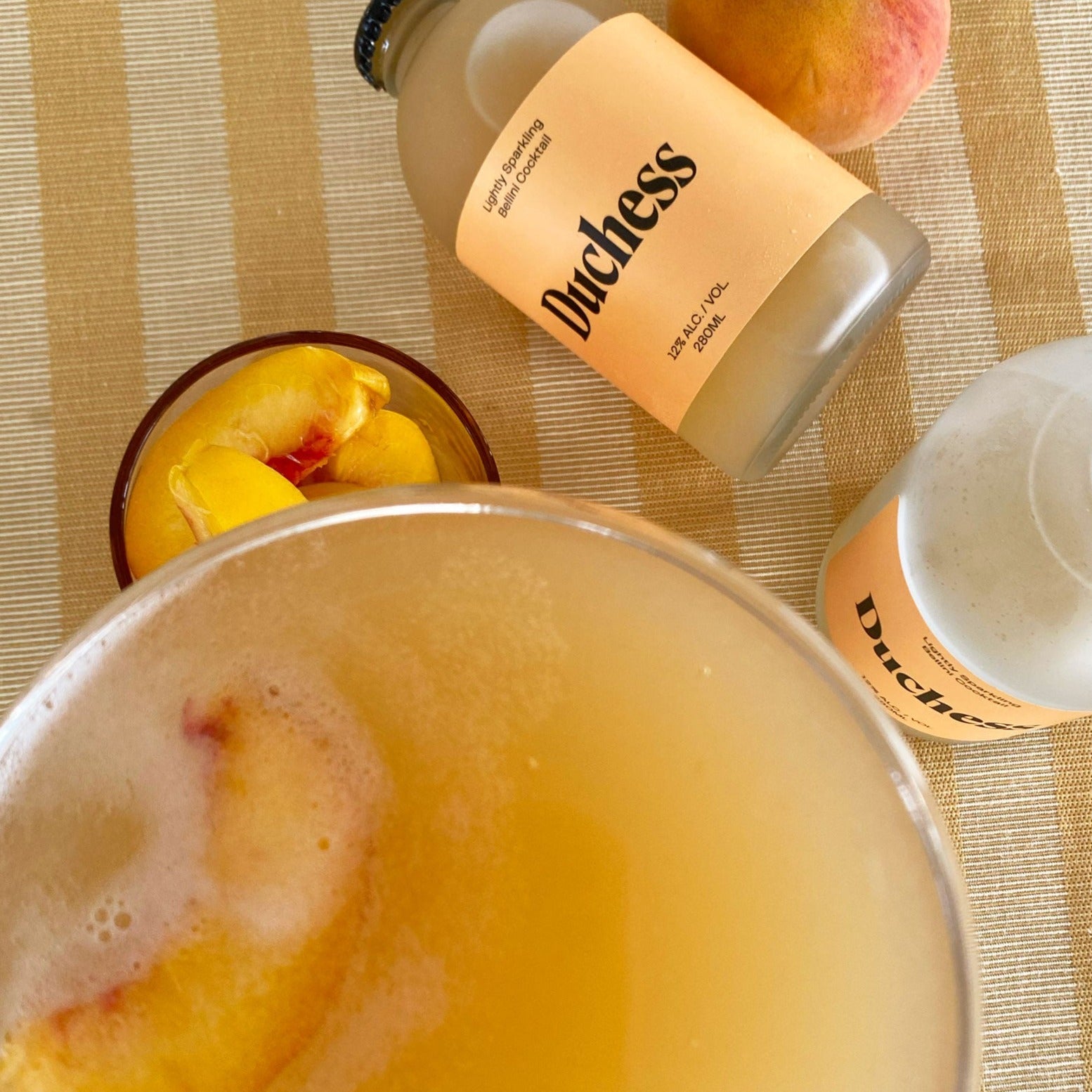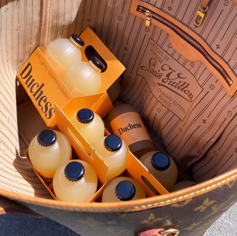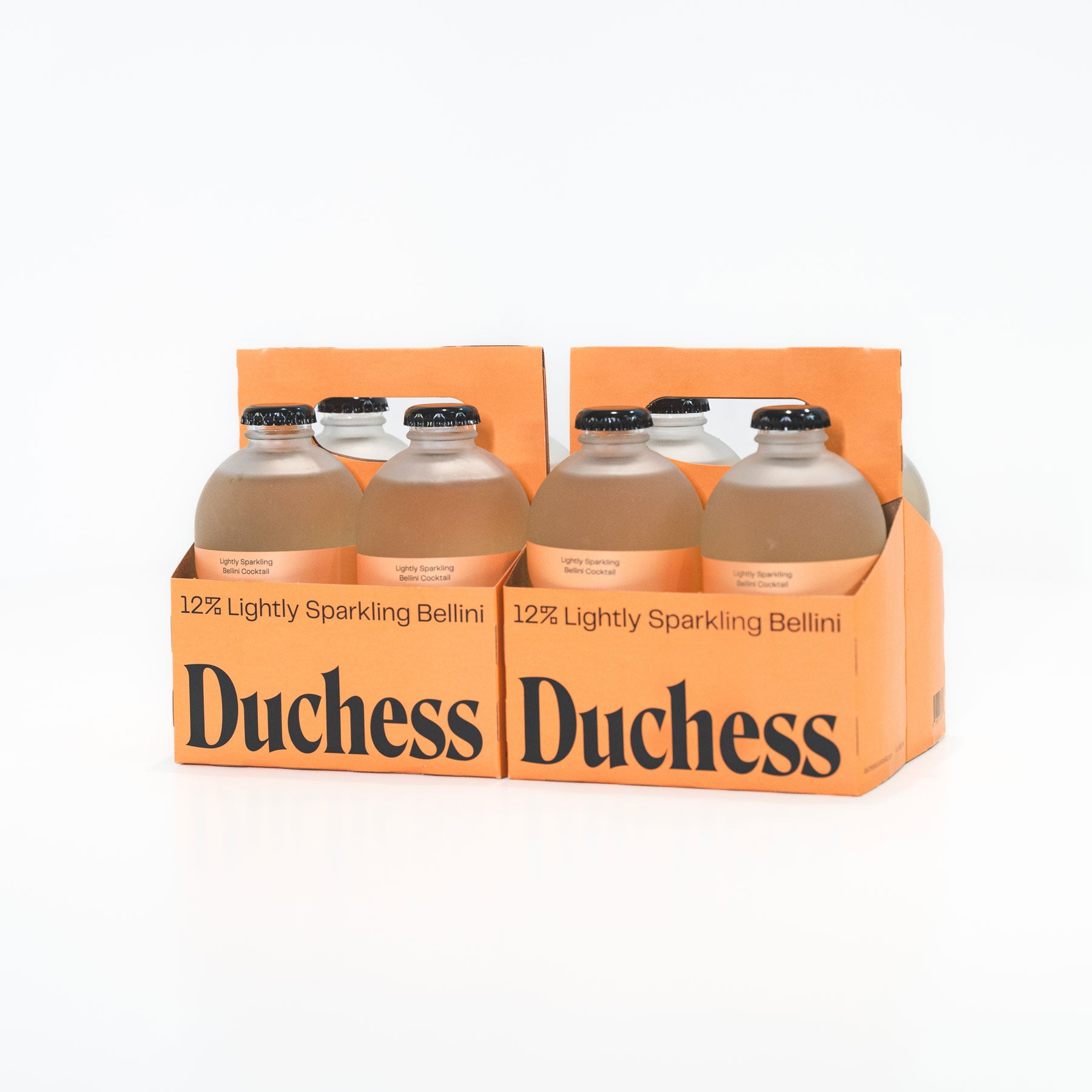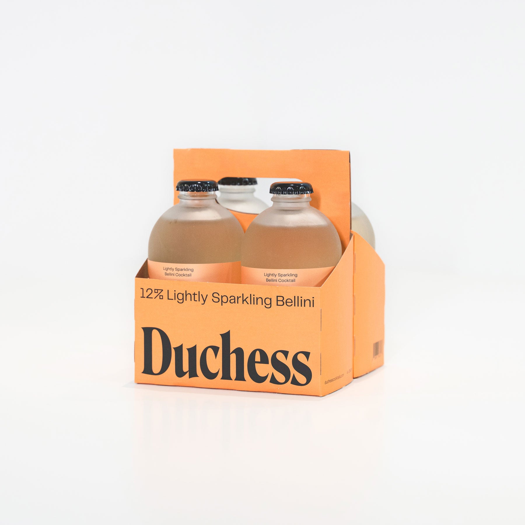 4 Italian-style Bellini cocktails in peach labels and a coordinated Duchess carrier. Each bottle is 280 ml, with 2 drinks per bottle.