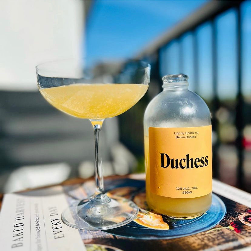 Duchess Bellini is a premium 12% bottled cocktail made with peach puree, white wine, vodka, and carbonated water. Offering a smooth, not-sweet, and balanced flavour profile, this ready-to-serve beverage is perfect for sipping with brunch, happy hour, or as a refreshing aperitif.